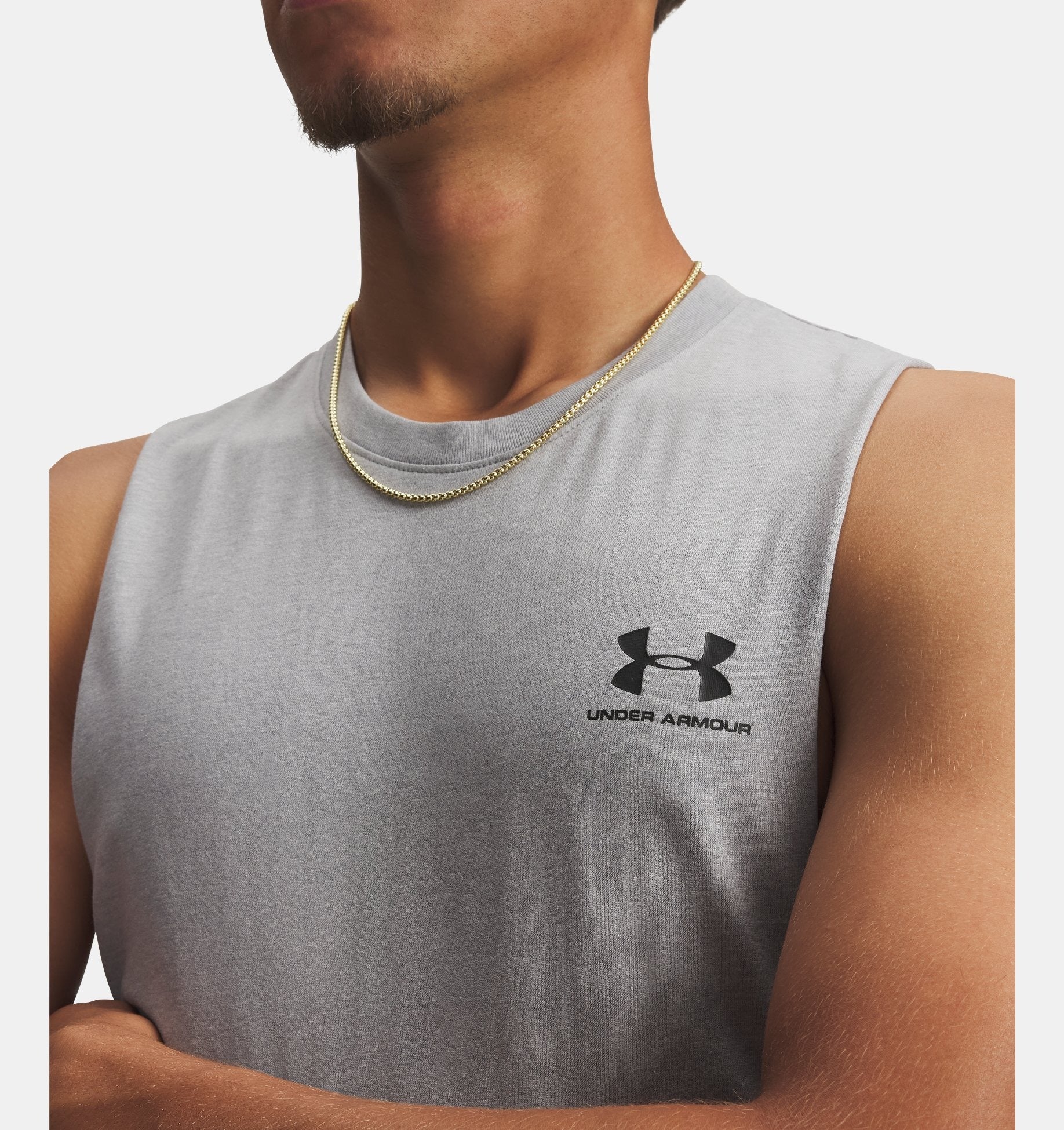 Under Armour Men's Left Chest Cut-Off Tank Steel Light Heather
